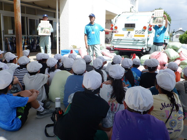 東部環境センターの職員の方を講師に招き、普段捨てているゴミが、どのように集められ、処理されているのかを学びました。