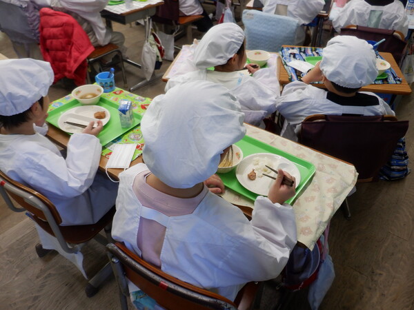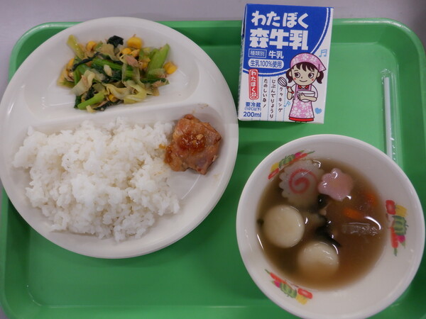 そして、新年初の給食では、お雑煮が提供されました。もちもちのお餅が入っており、どのクラスも美味しそうに食べていました。