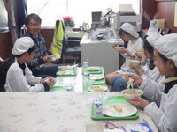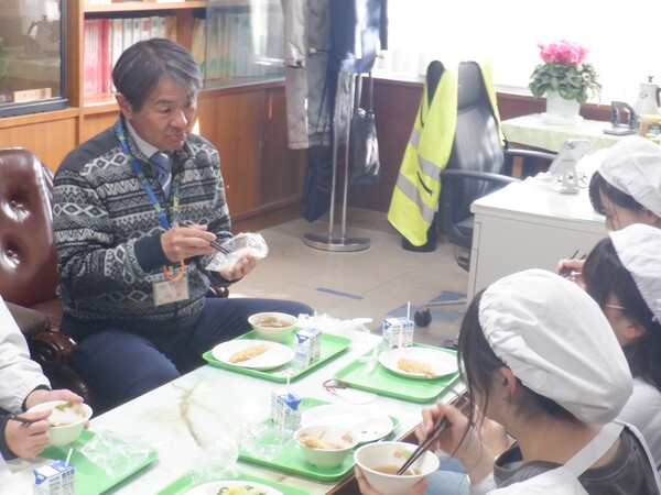 給食を食べながら、学校で行いたい活動や、学校をよりよくするための活動についての意見交換を行いました。