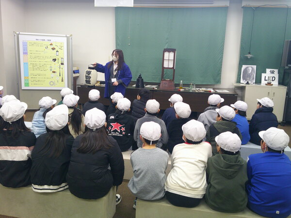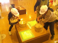 市立博物館では、昔の暮らしや文化に触れることができました。子どもたちは、石臼や天秤棒などの