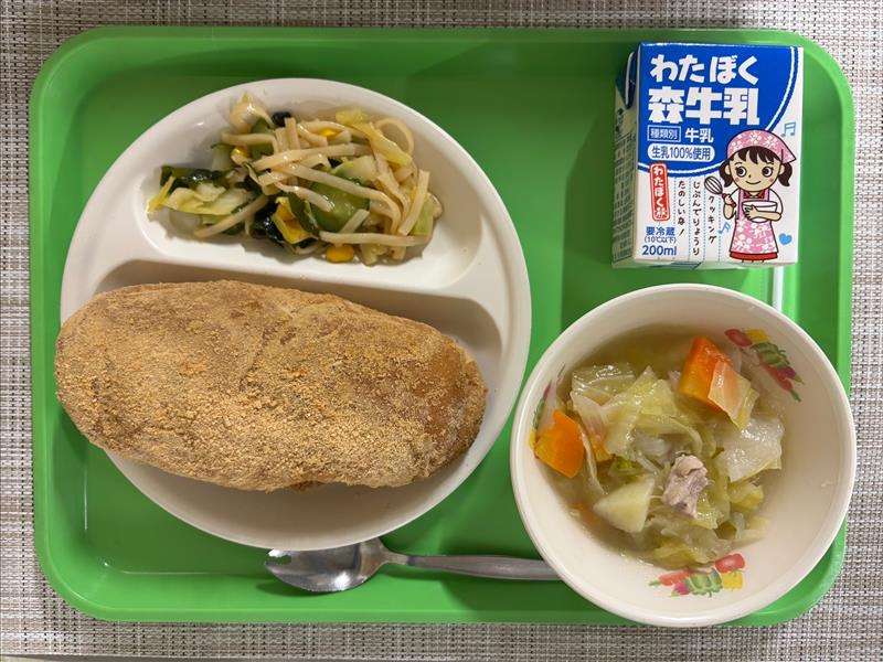 【今日の献立】 黒糖きなこあげパン・ポトフ・こめこめサラダ・牛乳
