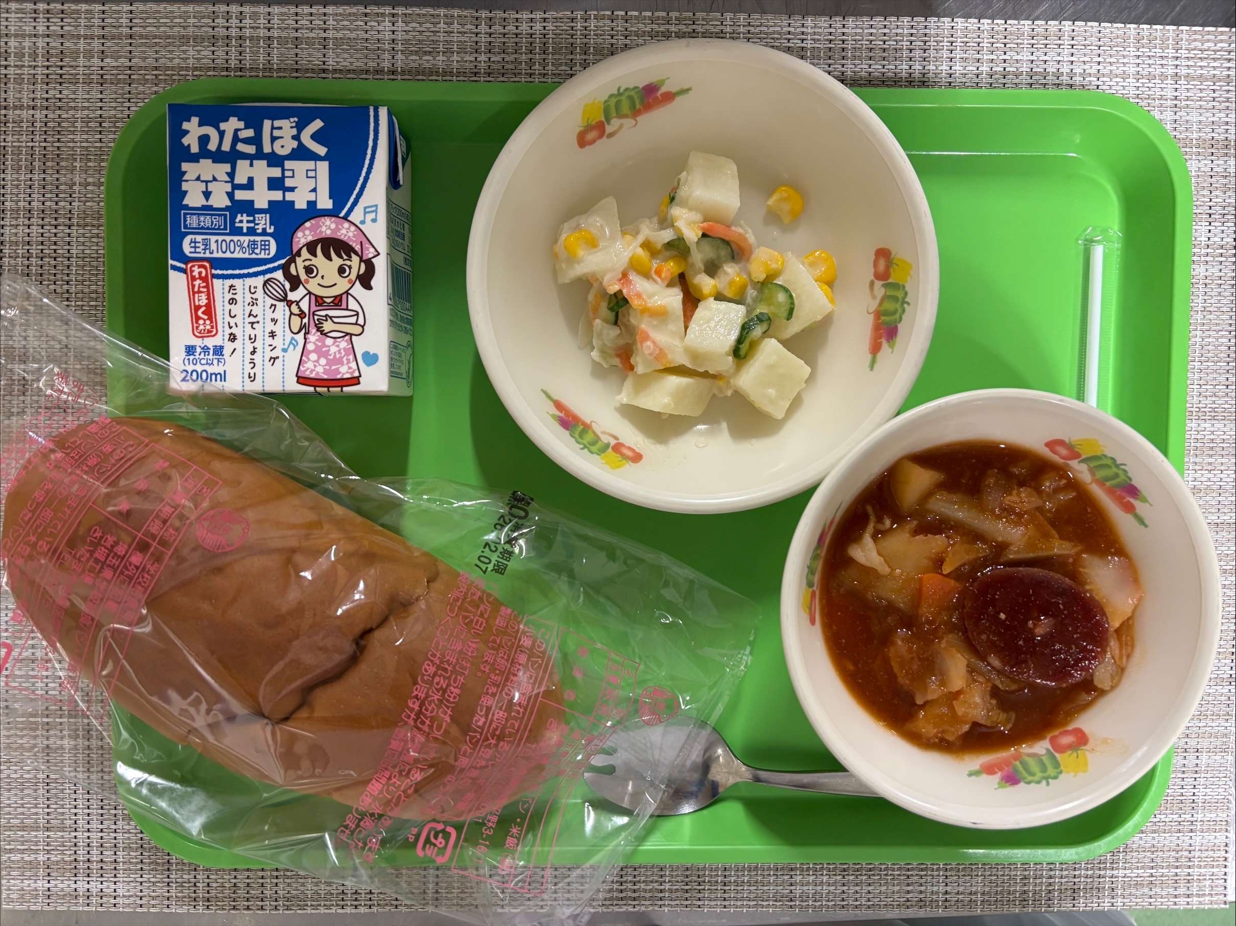 【今日の献立】 くろパン・ボルシチ・オリヴィエサラダ・牛乳