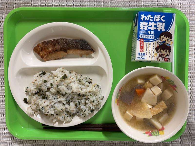 【今日の献立】 給食でめっちゃうまいまぜごはん「わかめごはん」・日本の和食の代表「焼き鮭」・