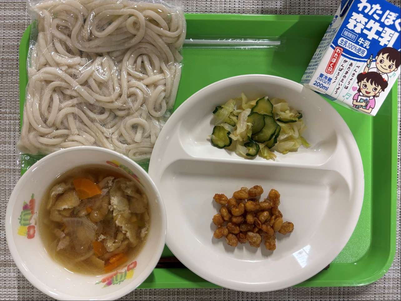 【今日の献立】 とりねぎゆずしおうどん・だいずのシャリシャリあげ・かおりづけ・牛乳