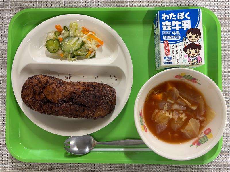 【今日の献立】 ココアあげパン・ABCスープ・フレンチサラダ・牛乳