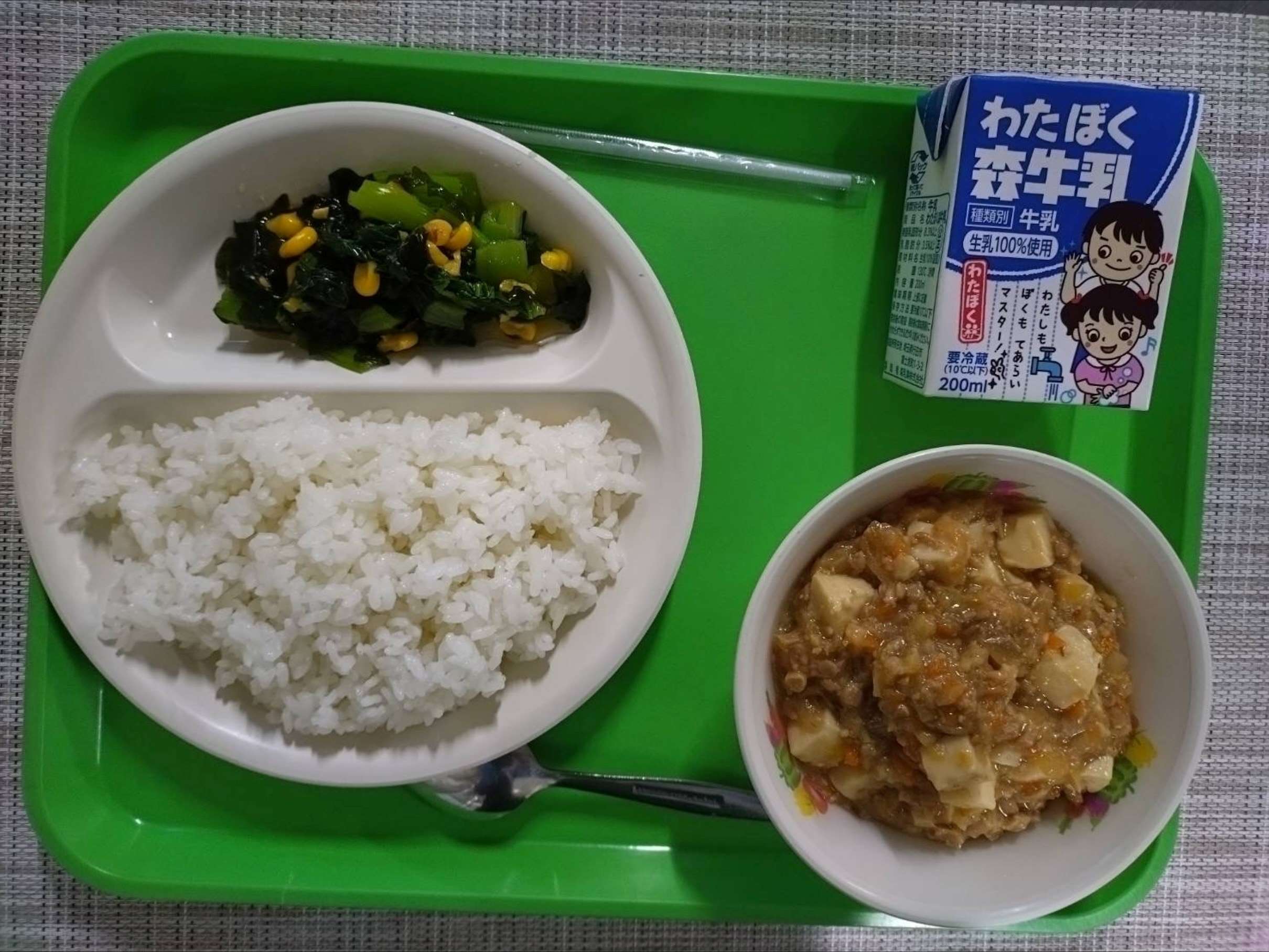 ごはん・マーボーどうふ・こまつなとわかめのサラダ・牛乳