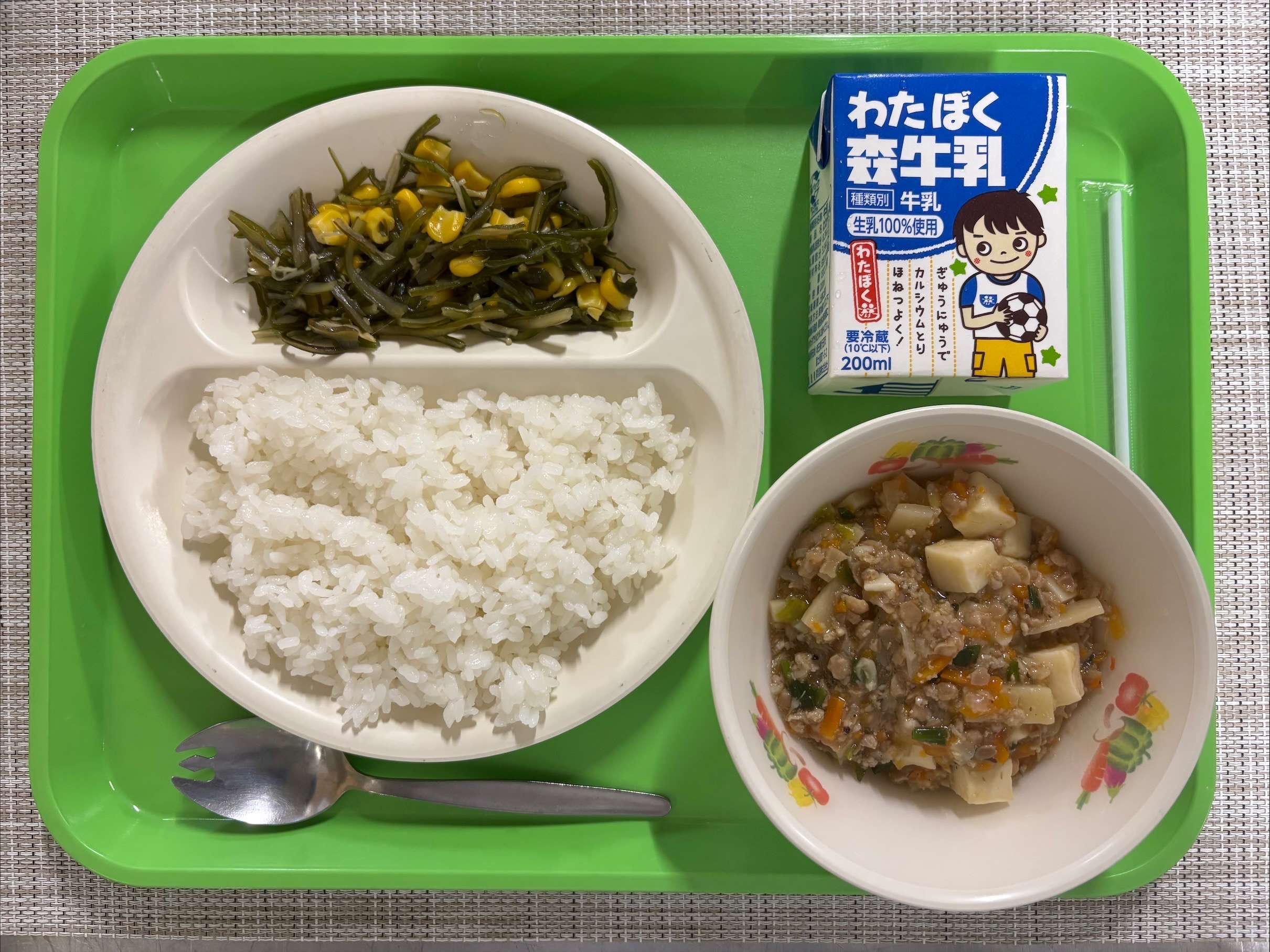ごはん・しおマーボーどうふ・くきわかめのソテー・牛乳