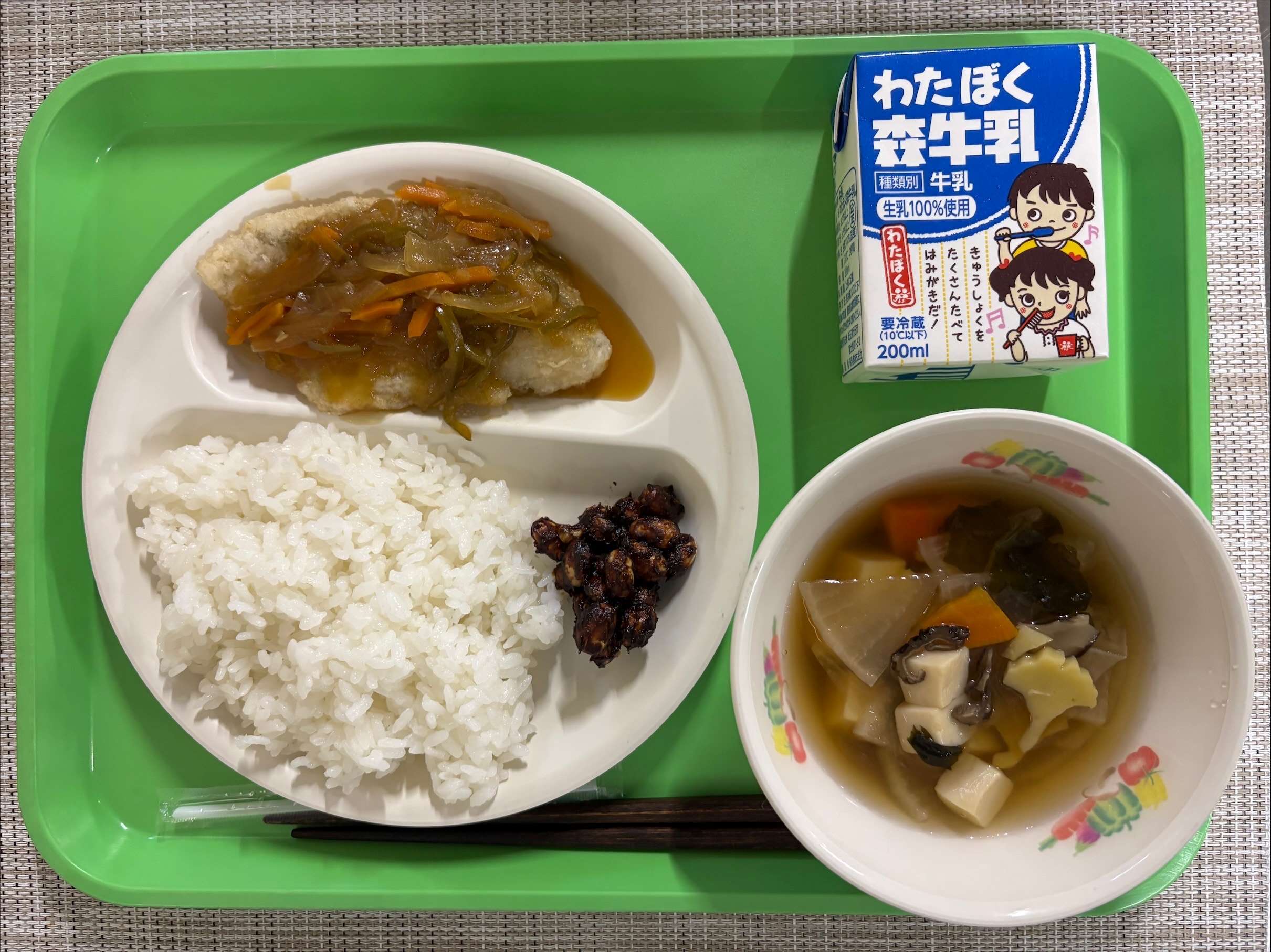今日は、絵本「すききらいなんてだいきらい」とコラボしたお話給食でした。絵本では、ピーマン・豆・さかな・きのこが嫌われ者で登場するので、それを今日の給食で取り入れました。嫌われ者でも、少しずづチャレンジして、いつかは食べられるようになろうという願いが込められた本です。あえて大豆の形を残し、存在を感じられるようにしました。絵本の動画をみながら、たのしく食べられたかな?食べられる食べ物が、少しずつ増えていくとうれしいなと思いました。